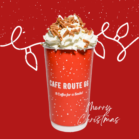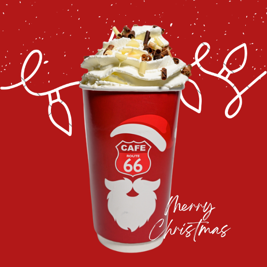 A balanced coffee drink with a double dose of espresso, white chocolate, cinnamon flavor extract, topped with whipped cream and caramel curl